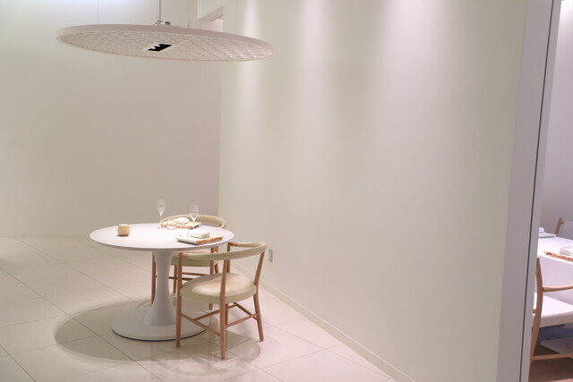 今回、店舗デザインを担当された「Design plus alpha(デザイン プラス アルファ)」の建築デザイナー:西村武史(Takeshi Nishimura)さんが、葛原シェフの理想とする創造の世界をイメージして創り上げています。コンセプトに沿った白を基調としシンプルモダンに仕上がったメインダイニング。