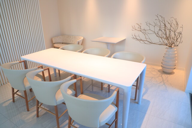 ゆったりと6名ほどで利用可能となるVIP専用の個室には、「Kitani(キタニ)」で特注した長テーブルと背中をすっぽりと包み込み、安らぎを感じるJacob Kjær 1948 JK-05が配され、コンテンポラリースタイルのテラスを設けており、屋外テラスの雰囲気も楽しめます。