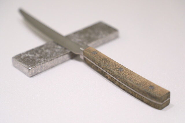 メインの肉料理用に仕上げたテーブルナイフは日本刀をイメージし、岐阜県「刃物屋三秀 関刃物ミュージアム」からの紹介で、日本刀を製作している鍛治職人が刃を担当し、美しいカーブを描いたハンドル部を「Shimoo Design(下尾デザイン)」が担った匠の合わせ技。美しい刃文が見られ、驚くほどに鋭い切れ味を持ち、僅かな反りをエッジに持たせ手に馴染む木製のハンドルで、力を加えずとも軽く手を添えた一太刀で、肉厚な断面美と出会えます。カトラリーレストも西陣織の華やかさを模して製作しており、凛とした佇まい。