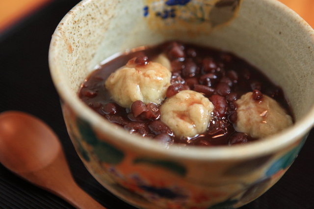 2013/10/18 手打ちそば「蕎麦家おおもり」の冷と温のそばを楽しんだ後に甘味のぜんざい