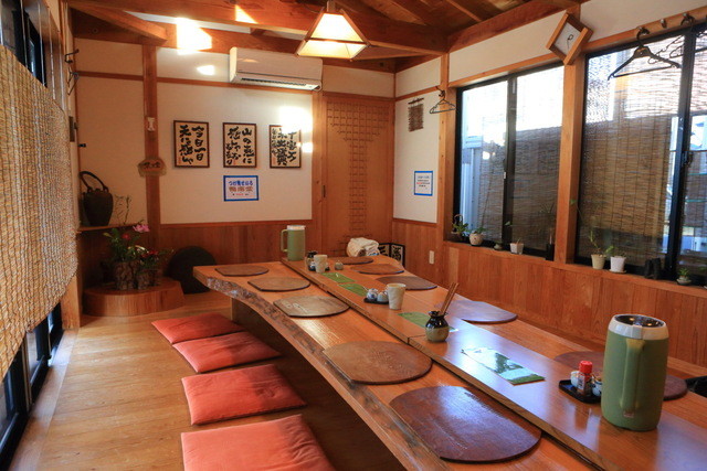 店内は、10名ほどの座敷と4名ほどが腰掛けれるカウンター席とのこじんまりとしたお店となり、天井は高く、木の温もりが溢れ、ゆったりとした時が流れる空間!