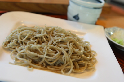 蕎麦殻を一緒に挽き込んだ、黒っぽい蕎麦粉により製造された蕎麦です。蕎麦の香りが非常に強いので、好きな方は田舎そばしか食べないという癖になる旨味でもあります。あまりつゆをつけずに味わい、塩でいただくのも良いでしょう♪