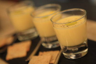 アミューズ「富山産ホタルイカの墨煮とじゃがいものピューレ」