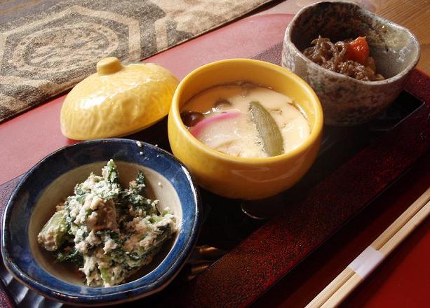 まず、白和え、茶碗蒸し、肉じゃがが運ばれてきました。