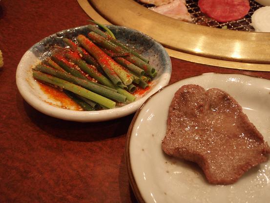塩タン(2〜3枚食べました)、上ロース、キムチ盛り合せ、野菜 のそれぞれ一人前です。