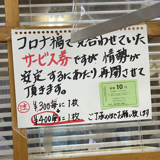 コロナ過で、非接触を考えて、中止していたサービス券が復活されるようです。