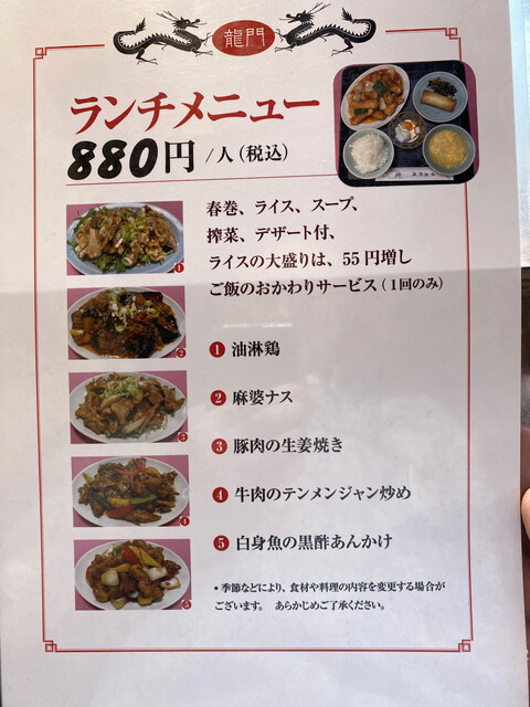 久々にランチに龍門に行きました。