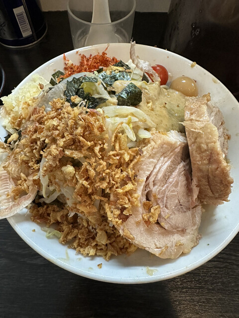 一緒に行ったパートナーのブタと麺も食べる必要があるので麺半分のオーダーした写真なので普通に頼むとこの倍の麺量です。