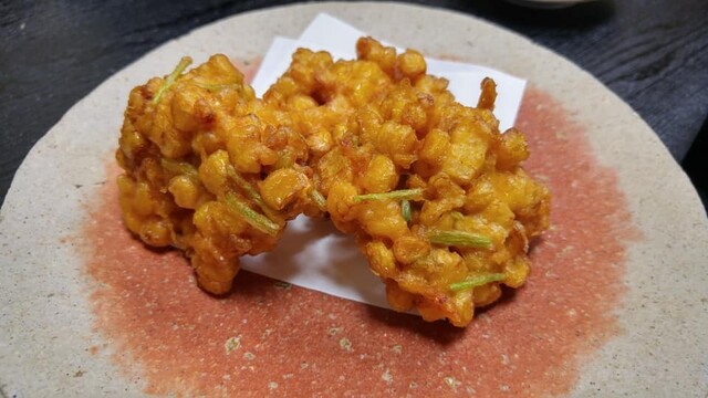 とうもろこしのかき揚げは甘みが際立ち、焼いた白子はとろけるよう。