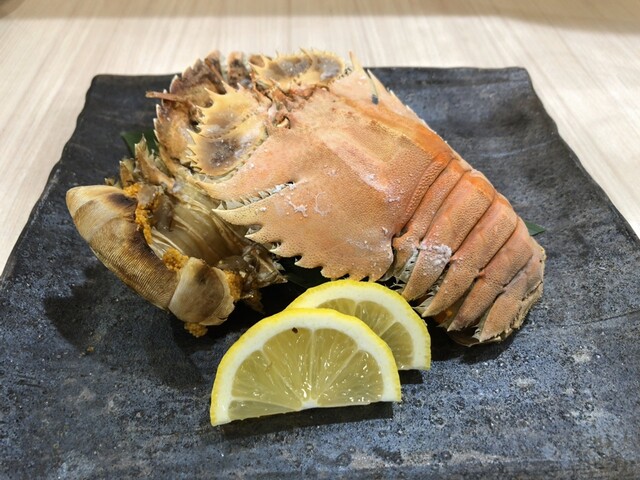 車海老の頭焼きは、香ばしく焼かれ、カリッとした殻の食感と濃厚なミソのコクがたまらない。