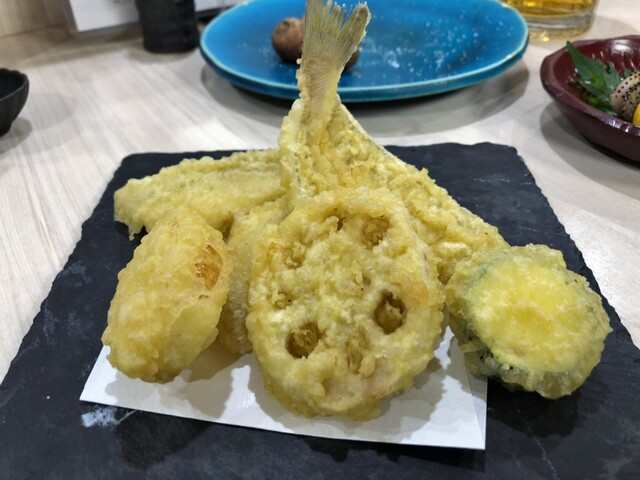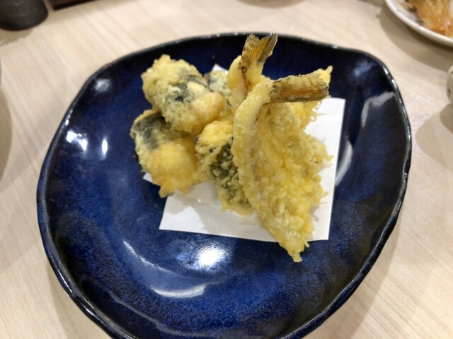 「天婦羅(ゴマフグ白子&ヤングコーン&下足)」は、衣はサクサク、中はふわっとクリーミー。特に白子の天婦羅はとろける旨さ。「お任せ握り」は脂がのったネタが揃い、一貫一貫しっかりとした味わい。