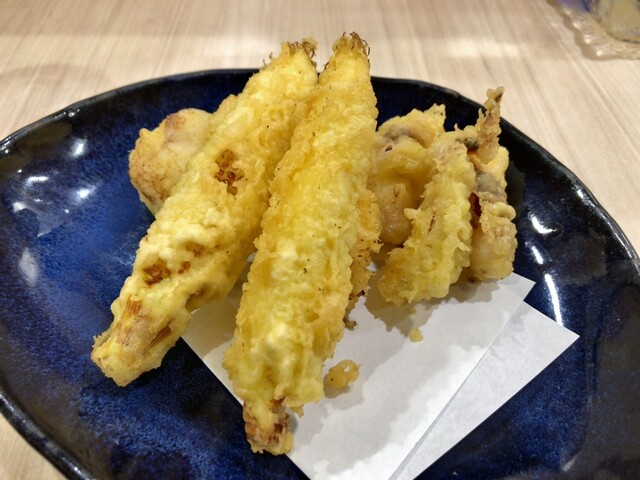 穴子の天婦羅は衣が軽やかで、中はふっくらとした白身の旨みがしっかり。