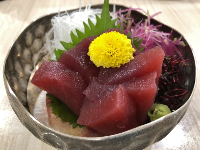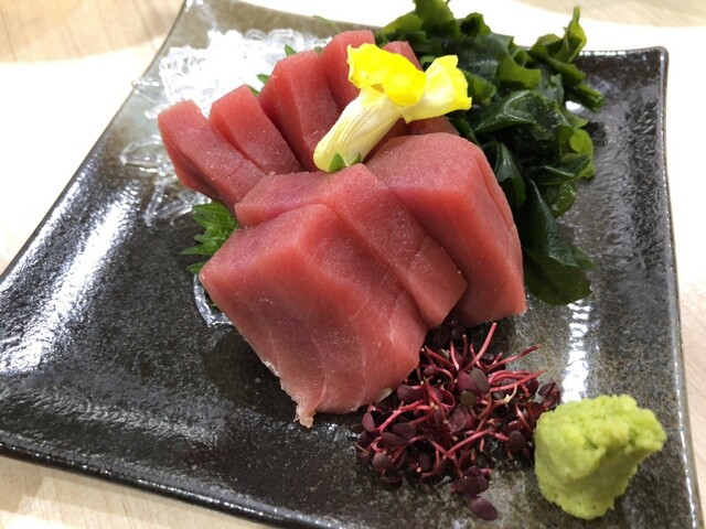 「まぐろ刺身」は厚切りで、赤身の旨みがしっかり。