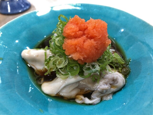 「酢牡蠣」は大ぶりな身が2つ、紅葉おろしと青ねぎを添えて、ぽん酢でさっぱりと。
