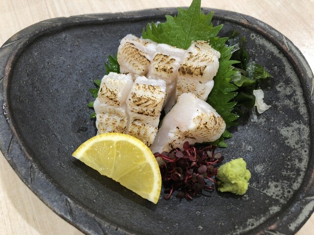 金目鯛の炙りは、軽く炙られた皮目の香ばしさと、脂ののった身のバランスが絶妙。