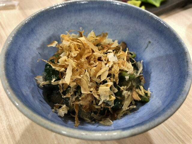 「水ナス」は細かく刻まれ、かつお節とともにさっぱりと涼感のある味わい。