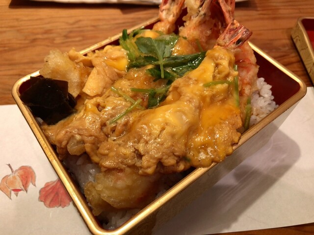 一方の蕎麦は、ふわふわの鱧天とサクサク香ばしい松茸のかき揚げがのった秋らしい一品。