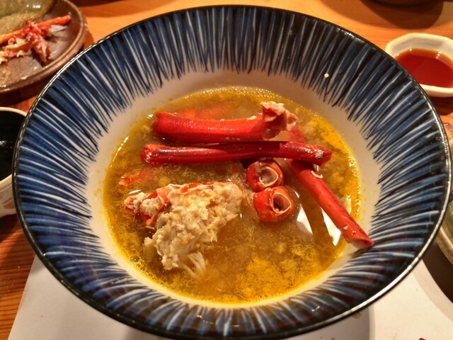 以前ランチで訪れた際に「たらば蟹を食べませんかと」と大将に案内され、実現した夢の蟹尽くし。