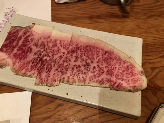 「長崎牛 サーロイン生ハム」は見た目のインパクトも強く、しっとりとした舌触りとともに濃厚な脂の旨味が楽しめた。