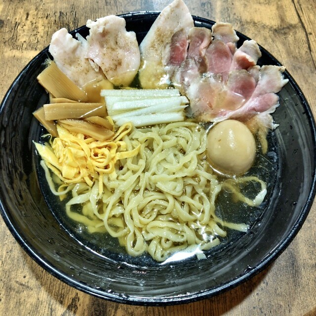 豚と鶏のチャーシューは細切りで、麺と絡めて食べやすく、スープの旨みをしっかり引き立ててくれる。