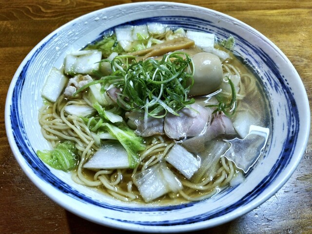 見た目通り澄んだ黄金色で、煮干しの旨味がぐっと広がる。
