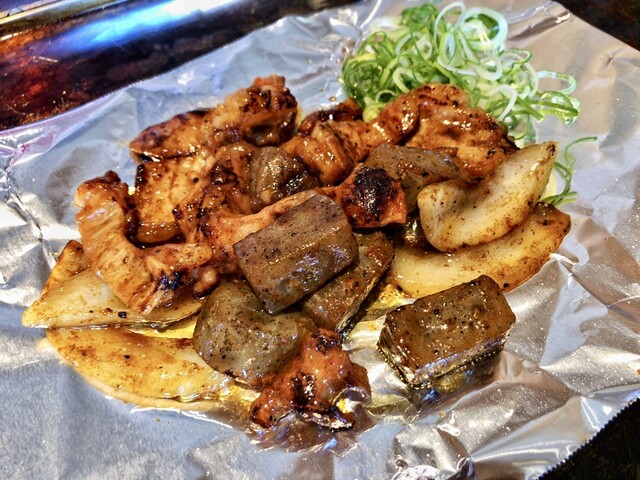 「ミックスホルモン炒め」は、こんにゃくと玉ねぎが一緒になっていて、噛めば脂の甘みがじゅっと出る。
