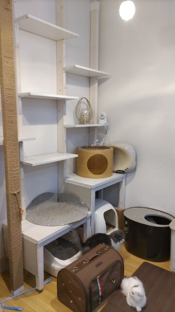 色々な猫ちゃんの遊び道具やキャットタワーもあるので猫ちゃんとのふれあい方も猫じゃらし、かくれんぼなど色々楽しめる╰(*´︶`*)╯♫