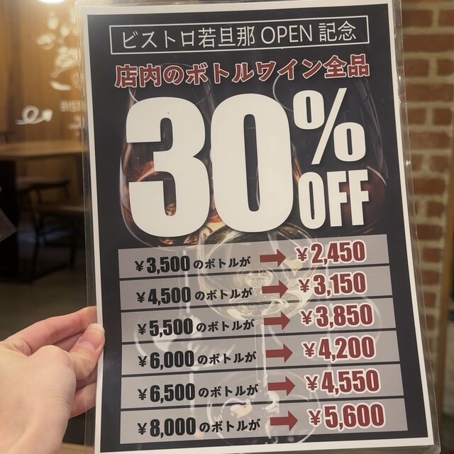 ワインリスト掲載価格から“ボトルのみ30%OFF”の破格