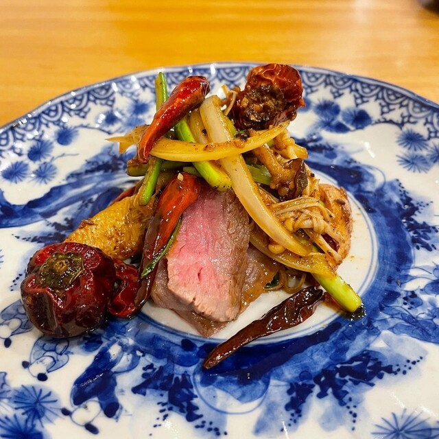 国産唐辛子と中国産唐辛子の赤が目立つ観音池ポークと唐辛子のクミン炒めだけど、「しびれ」とはこれか!と感じる山椒のしびれのインパクトのある1品でした❤