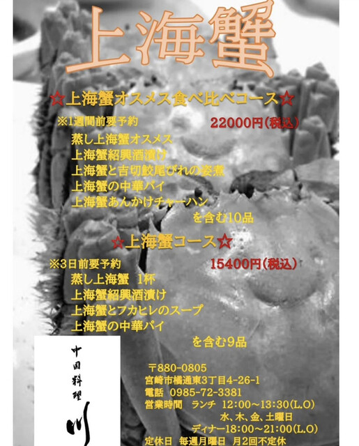 この時期ならではの上海蟹と和製上海蟹と言われる山太郎蟹(モクズガニ)の紹興酒漬けの食べ比べは面白かったです。