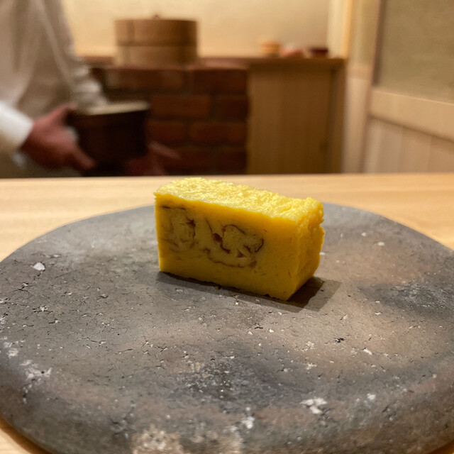 ・大分産トラフグの焼き白子の茶碗蒸しにダイダイのポン酢餡
