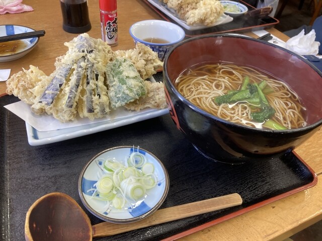 肝心の料理だが 1080円の舞茸天ぷら蕎麦は 美味しい天ぷらが食べきれないほど乗っていてサクサク 塩で食べてもとても美味しかった♪800円のワカサギフライ12匹も ここで釣れたワカサギで 新鮮でとても美味しかった♪これは3人でシェア。他の人は 800円のワカサギフライとご飯味噌汁漬物のセットで計1100円。