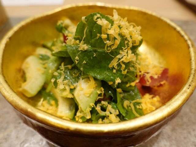 『乾燥豆腐と大根・蕗の薹の天婦羅白味噌仕立て』