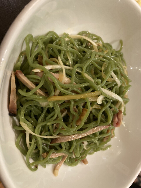 里麺とは何?と思ったらクロレラ入りの中華麺にチャーシュー、ネギ、ザーサイを絡めて胡麻油などで味付けした汁なし麺でした。こちらが大変美味!少し塩味が強い気もしますが、本当に止まらないぐらい美味しいです!