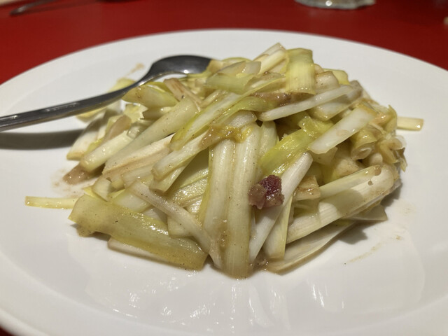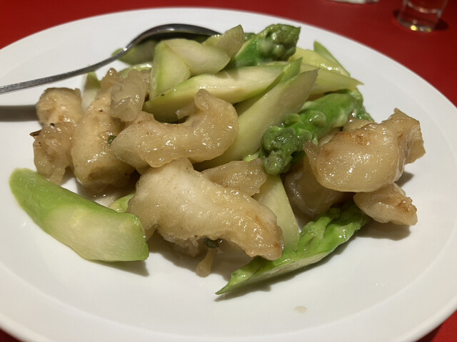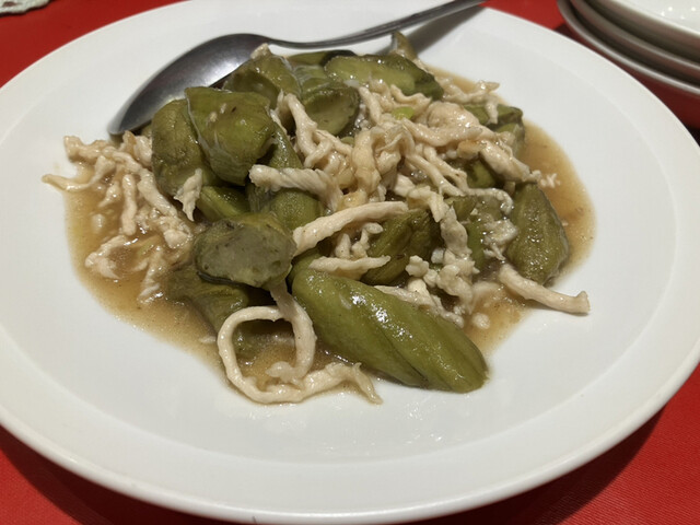 口に運ぶと、太めのフカヒレのプチプチとした食感がたまらなく楽しいです。海鮮の旨味がたっぷり感じられ、フカヒレスープとして飲みたいぐらいでした。期待を裏切らない味でした。さらに、千切りの生姜がアクセントとなって、全体を引き締めてくれている印象です。