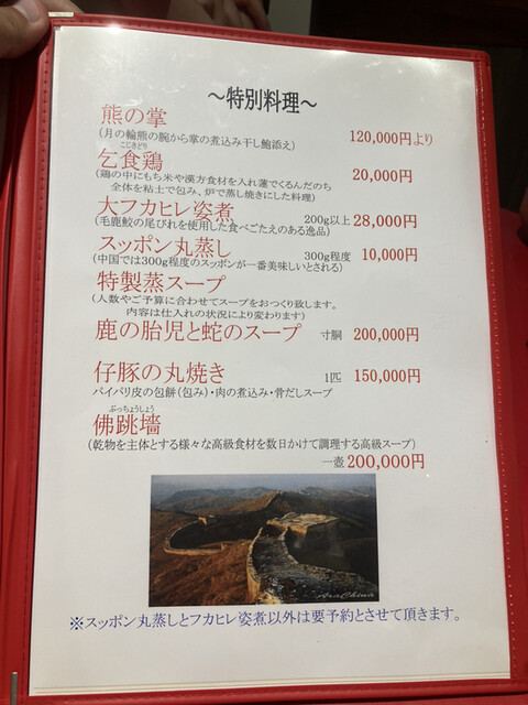 今回はストップと言うまでおまかせで出てくるコースでお願いしました。都合11品+スープと里麺、炒飯で1人だいたい1万円弱位でした。