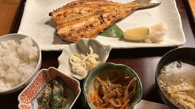 おつまみを堪能したあと、本日のメインであるアジフライ定食が到着。