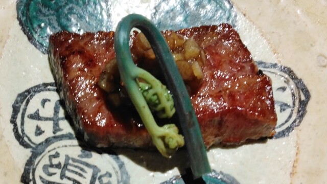 ハラミさしからぬやわらかさでビックリしました。しっとり&柔らかなお肉の上にはワラビが乗っていて、これがまた和のテイストに仕上げてくれているんです。