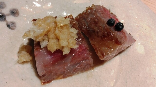 リブロース肉、しかも神戸牛のね、それとトラフグの白子をおすましに入れちゃうなんて、贅沢過ぎません? お肉だけでも十分美味しいのに。