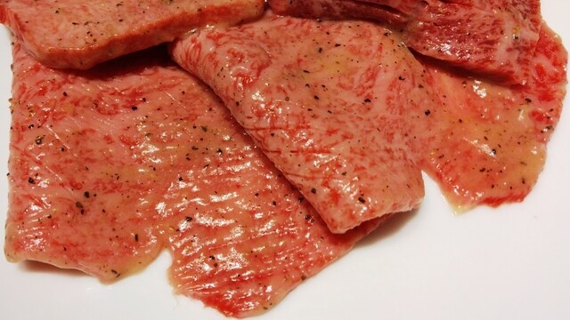 岩手県産のハラミ肉で、真空パックにしない"未真空"のお肉なんですって。真空パックは保存がきく半面、どうしても風味が少し落ちてしまうので、未真空は味が深いです。