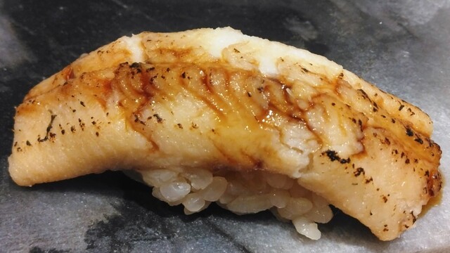 目の前でバーナーで炙ってくださったので、アツアツのが出てきました。だから香りも良いです。