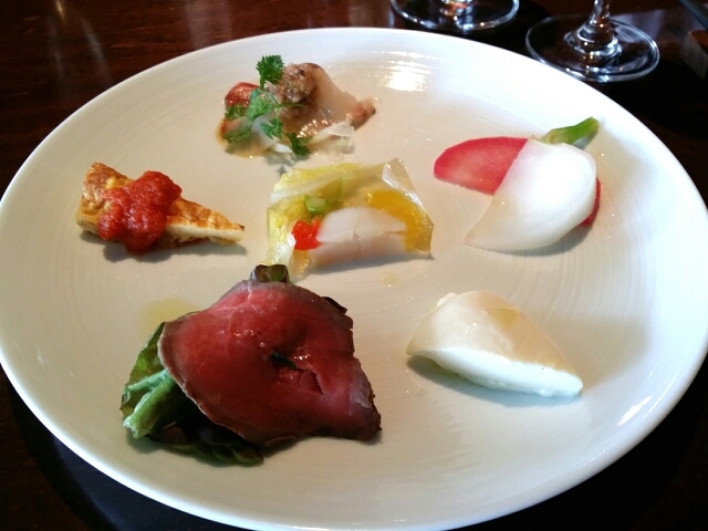 つきだしはミルフィーユ状のお料理でした。