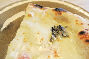 非常に食べやすいピッツアです。スモークチーズを使われているせいか