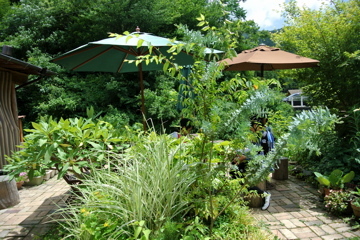 薪や緑につつまれた小さな民家風の建物がお店でした。
