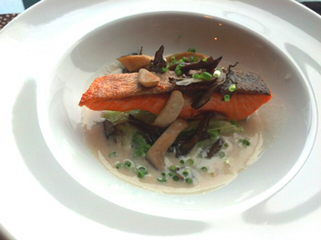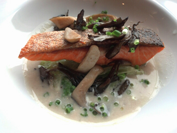 (私はサーモンのソテーときのことレタスのあっさり豆乳クリームソース)