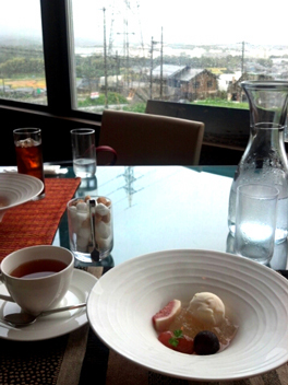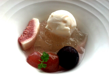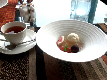 いちじくなどのフルーツとゼリー、アイス。紅茶。