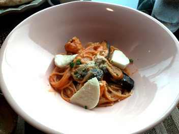 (私はモッツアレラと揚げなすのトマトクリームソース)