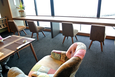 広々とした空気を味わうことが出来ます。イスの質感やサイズ、いいね~。