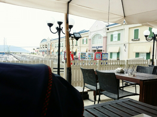 垂水のアウトレット、マリンピア神戸へ行ってきました!道や敷地が広々としているので散歩メインの予定が、週末でしたが人もそんなに多くもなく、同じ様にベビーカー連れのご家族やペットを連れた方もとても多くて非常にすごしやすかったです。昼過ぎでお腹減ったね…と、ランチすることに。テラス席があるレストランがある事も、おでかけの決め手でした。LOCHEMARKETSTOREローチェマーケットストアhttp://r.gnavi.co.jp/k113435/こちらのお店はメインのピザ(パスタやドリアなどもあり)+@生野菜や温野菜などと飲み物がビュッフェスタイル。メインの品の料金で値段は変動します。大体1500~1900円位かな?テラス席はペット同伴OK!※店員さんに直接お伺いしました但し15時からは喫煙可能になるそうビュッフェスタイルのお野菜をまず取りまして~揚げた長芋、ガーリック枝豆、生野菜など、フォカッチャはプレーンと抹茶。飲み物はアップルビネガー、自家製レモネード+アイスティー、コーヒー+牛乳でカフェオレ。ほどなくして全部テーブルに並びました。イタリア産モルタデッラハムのピッツァビスマルク1680円、明石ダコとジャガイモのトマトソースピッツァ1750円を注文。美味しかった~ボリュームあり。ベビーカーで爆睡していたたろうでしたが少し暑そうにしはじめたので終盤はひざの上へ。実は親子マリンルック!なぜたろうはペロリしている…。もうちょっと落ち着いたら愛犬もここに連れて行きたいなぁ~~