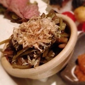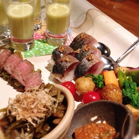 大きな大きな和食器に色とりどりのつきだしが盛り付けられています。
